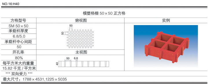 玻璃鋼格柵 >> 模塑類 >> H40×50×50正方格