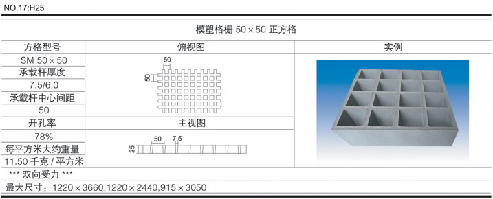 玻璃鋼格柵 >> 模塑類 >> H25×50×50正方格